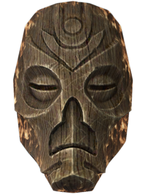 The wooden mask is a dragon priest mask found at labyrinthian alongside a long forgotten note it is enchanted with an effect named bromjunaar s mystery that causes the wearer to be teleported backwards in time to bromjunaar sanctuary the special effect only works if the mask is equipped while inside of the ruined building outside of labyrinthian where the mask is initially found. The wooden mask hums with an unfamiliar energy. The wooden mask is found next to a ruined altar inside the nordic dwelling within the ruins of labyrinthian donning the mask teleports the dragonborn seemingly back in time to the same room but with an intact altar like mask stand on which the eight masks of the dragon priests can be mounted. The wooden mask is a dragon priest mask found in the elder scrolls v.