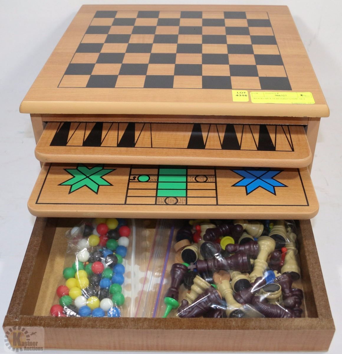 When you re looking for more than just chess multi game sets are a great choice. All games in this cardinal chess and checkers set are housed in a beautiful wooden cabinet that makes the collection a display piece as well. This wooden multi game chess set includes the components for chess backgammon checkers solitaire chinese checkers cribbage dominoes cards tic tac toe and poker dice. This beautiful wooden set includes the timeless classics chess checkers backgammon chinese checkers and pachisi.